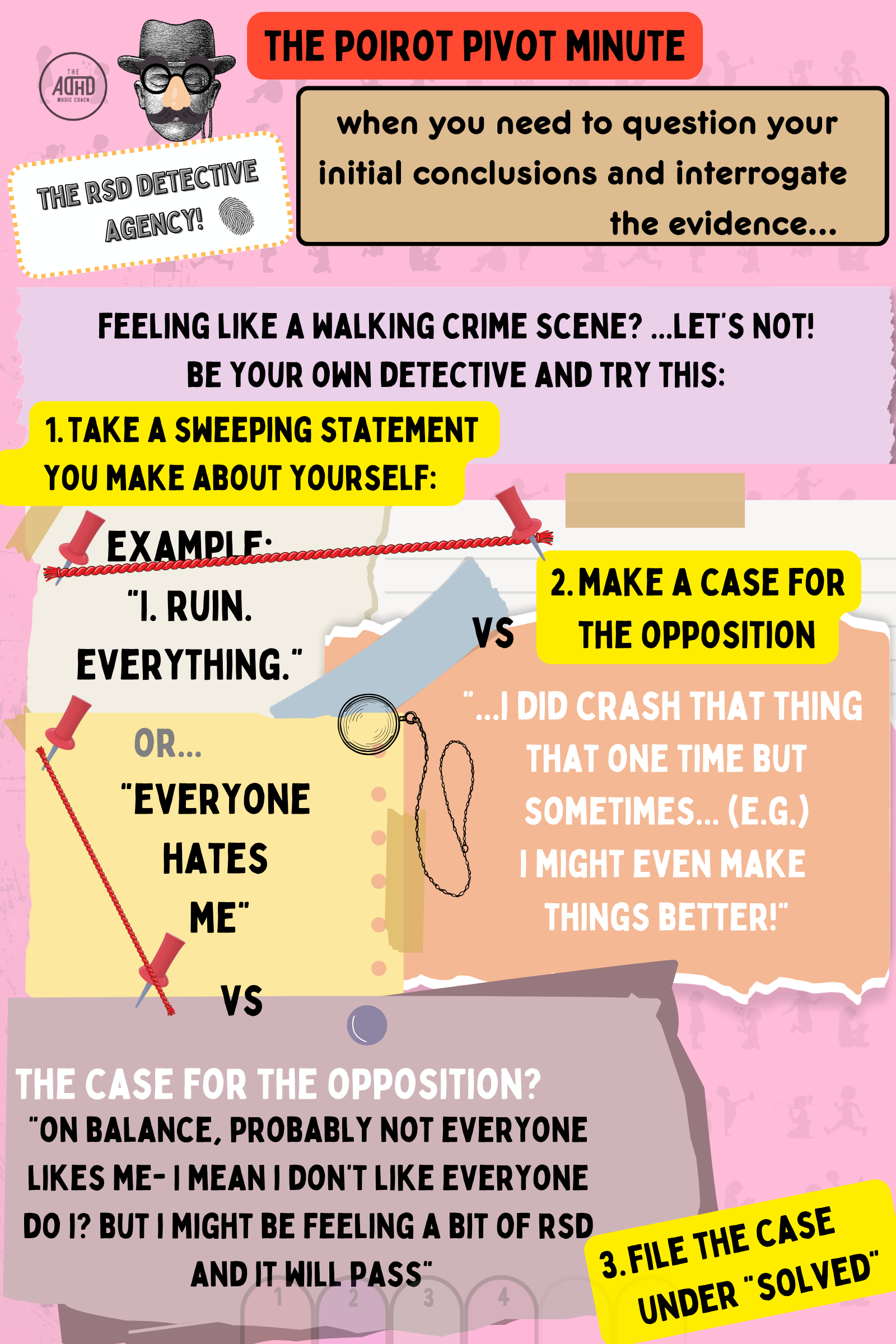 Get your magnifying glass out and employ the RSD Detective Agency when you need to stop feeling like a walking crime scene and rewrite that self-narrative